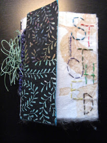 Okay now to my thoughts on beading. I am not a much of a beader and this month has allowed me the opportunity to think about that. Why have I ended up here? As I have thought about it I have gone back to some of the things that Beata has said about beading as embellishment. I think that a piece of art work needs to have a focus. When I have beaded I have started out with the plan to bead and I tend to bead a lot. When I have not beaded, my focus was on other design elements or techniques. Generally I feel my voice is more into intricate piecing. And when I have a failed design and have tried to cover that with the glitter of beads--well, lets just say that you can't turn a sow's ear into a silk purse no matter how many beads you add.