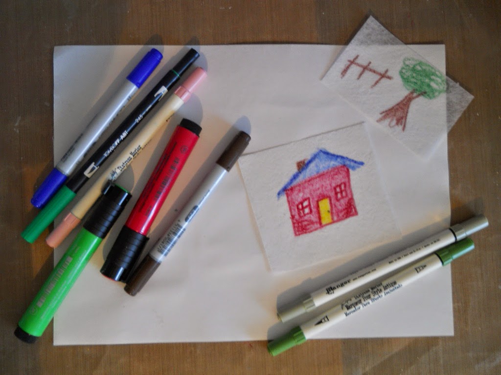 Next I used a scrap of Lutradur that I'd practiced drawing with crayons on. The grand kiddies luv snail mail. It needed to have the colours deepened and I used a variety of markers.