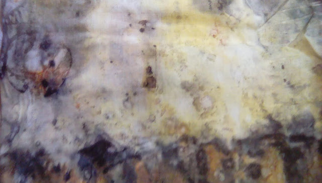 Cris Winters had asked for lots of mordant information and thankfully Janine was able to help with that. Janine also talked about Amelia Poole. We are very lucky to have her in Maine. She often does workshop and Janine has attended two. I see Amelia at least yearly at craft fairs. Her paper and fabric prints are among the best that I have seen. I really love her because gets a really good print rather than fabric with a blurry shape and great coloration. I prefer the print since I am a printer and Janine prefers the fabulous colorations. Isn't it nice to be the same (we both like eco-prints) and different (we call different effects "success")?
